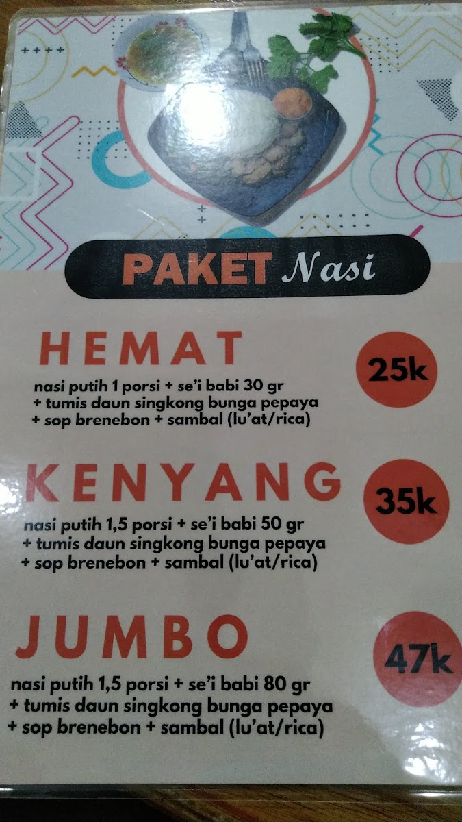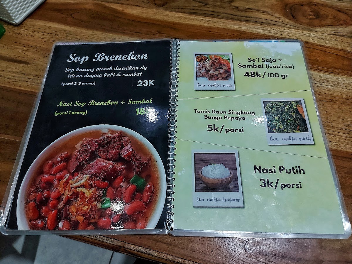 The menu highlights include not only the signature se’i babi but also expertly crafted dishes like nasi goreng se’i babi, praised for its rich, aromatic spices and perfectly tender meat. The sop brenebon offers a hearty experience with its dense, flavorful broth and generous portions of red kidney beans and pork, complementing the smoky main dishes.